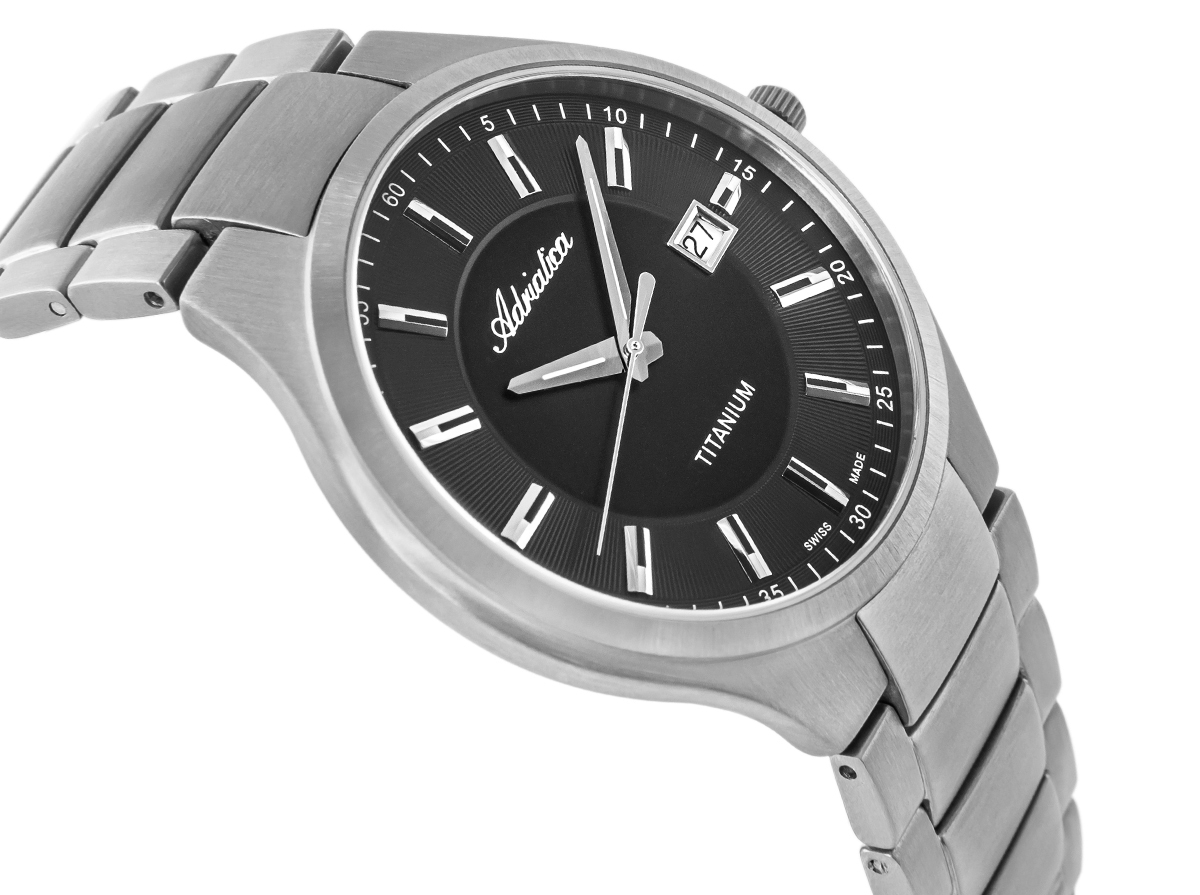 Model Adriatica Premiere A8329.4114Q to wyjątkowe połączenie nowoczesnej formy i komfortu użytkowania. Jego koperta oraz bransoleta zostały wykonane z lekkiego i hipoalergicznego tytanu, który zapewnia trwałość, a przy tym niemal niewyczuwalną wagę na nadgarstku. Głęboka, czarna tarcza ozdobiona jest subtelnym szlifem słonecznym i eleganckimi, srebrnymi indeksami, które dodają zegarkowi wyrazistego charakteru i świetnej czytelności. W sercu zegarka pracuje mechanizm kwarcowy Swiss Made – sprawdzony, precyzyjny, gotowy, by służyć przez lata, bez względu na to, jak intensywny bywa Twój dzień. Nie znajdziesz tu nadmiaru ozdobników – to design, który nie potrzebuje krzykliwych akcentów, by robić wrażenie. Tarczę osłania odporne na zarysowania szafirowe szkło, które skutecznie chroni to, co najważniejsze – estetykę, precyzję i spójność formy. Całość zamknięto w 41-milimetrowej kopercie z tytanu – wystarczająco wyrazistej, by zaznaczyć obecność na nadgarstku, ale na tyle smukłej, by z łatwością wsunąć się pod mankiet koszuli.