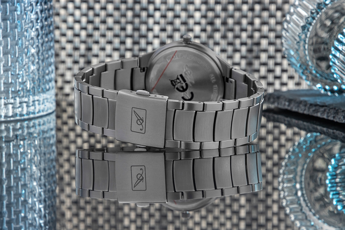 Wykonana z najwyższej jakości tytanu, bransoleta łączy w sobie wyjątkową lekkość, odporność na korozję i nowoczesną trwałość. Jej matowe wykończenie nadaje zegarkowi subtelnie techniczny, a jednocześnie elegancki wygląd. Solidna, a przy tym niezwykle komfortowa w noszeniu – idealna na co dzień i do bardziej wymagających warunków. Precyzyjne zapięcie z grawerowanym logo podkreśla dbałość o detale i szwajcarski rodowód modelu.