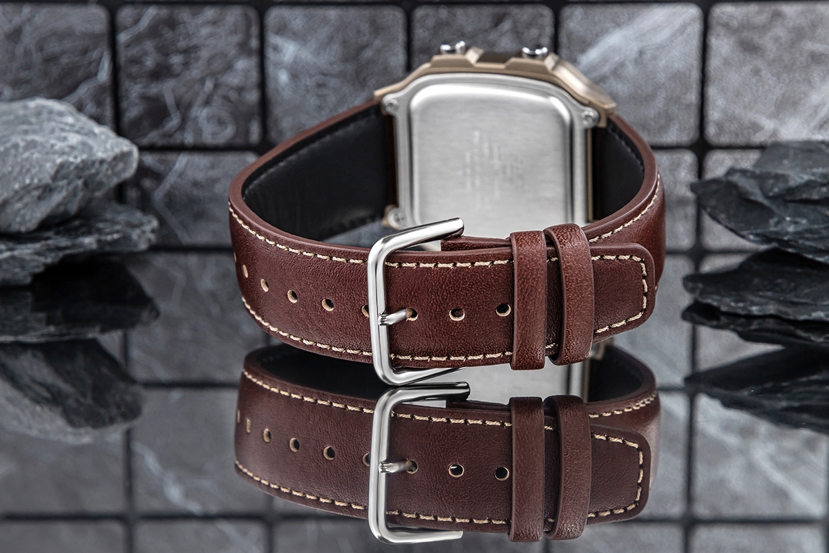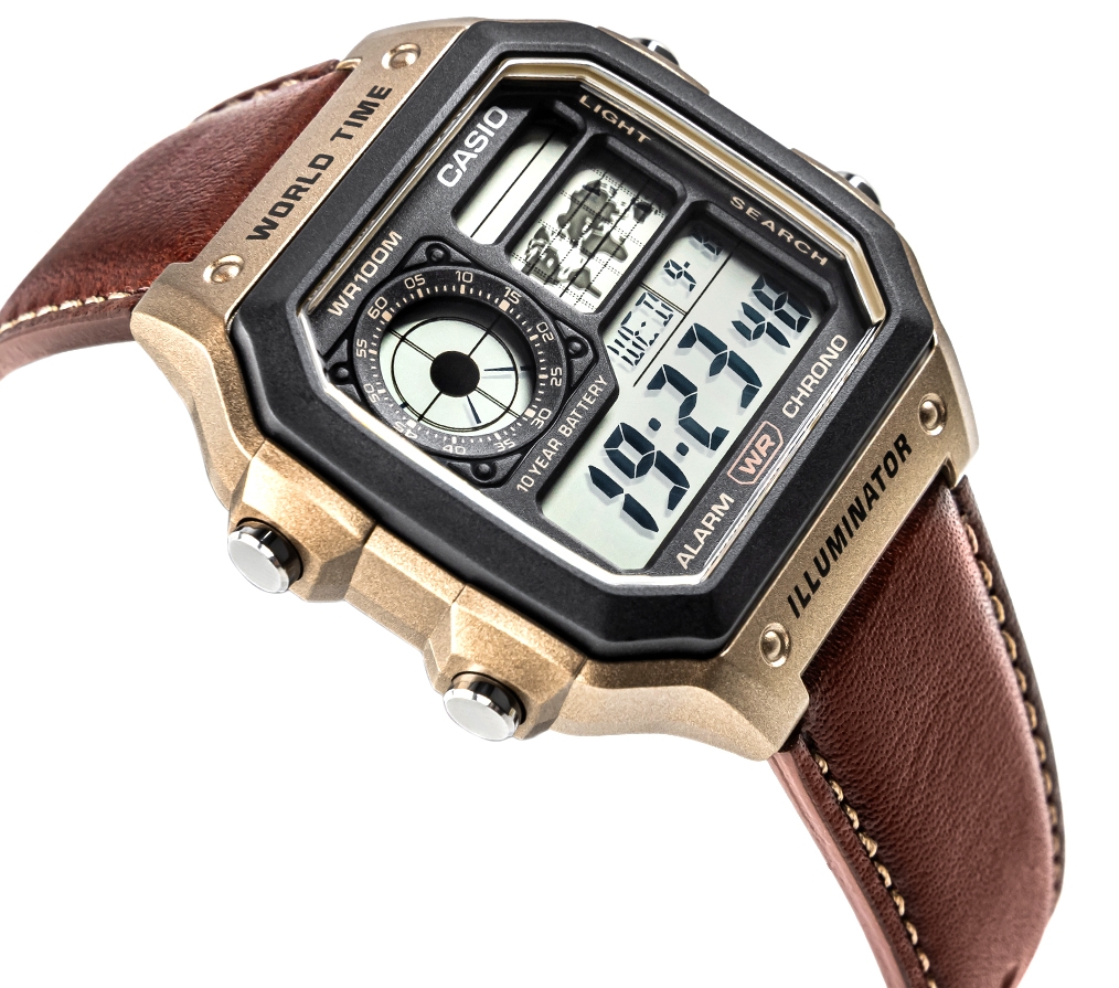 Casio AE-1200WHL-5AVEF to męski zegarek cyfrowy z kultowej serii Casio Collection, który w wyjątkowy sposób łączy wojskowy styl i retrodesign z nowoczesną technologią. Solidna koperta z tworzywa sztucznego, szkiełko haselitowe oraz wytrzymały pasek skórzany tworzą lekką, a zarazem niezwykle wygodną konstrukcję, idealną na co dzień i w podróży. Ciemnozielona kolorystyka z czarnymi akcentami i prostokątna tarcza LCD z mapą świata nadają zegarkowi charakterystyczny, przygodowy wygląd inspirowany stylem vintage. Model wyposażono w funkcję czasu światowego (World Time), pięć alarmów dziennych, stoper 1/100 sekundy, timer odliczania, automatyczny kalendarz oraz podświetlenie LED z regulacją czasu świecenia. Zasilany baterią o żywotności do 10 lat, oferuje również wodoszczelność 100 metrów, dzięki czemu doskonale sprawdzi się zarówno w miejskiej dżungli, jak i w terenie. Casio to zegarek dla mężczyzn, którzy cenią niezawodność, funkcjonalność i ponadczasowy design z nutą przygody.