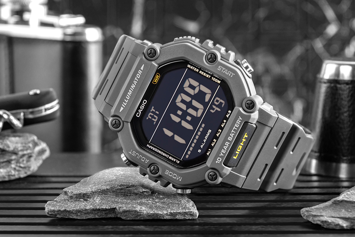Model CASIO o dużym, łatwym do odczytania i obsługi ekranie LCD, z solidną kopertą o geometrycznym designie. Zegarek daje możliwość śledzenia dwóch stref czasowych jednocześnie – idealne dla osób w podróży lub pracujących międzynarodowo. Dzięki przyciskowi umieszczonemu z przodu koperty, dostęp do podświetlenia LED jest wyjątkowo prosty i intuicyjny. Wodoszczelność do 100 metrów oraz 10-letnia żywotność baterii sprawiają, że możesz zapomnieć o jakiejkolwiek konserwacji na długi czas. Wyposażony w bogate funkcje: stoper z dokładnością 1/100 sekundy, timer z funkcją odliczania, 5 alarmów wielofunkcyjnych (1 z funkcją drzemki), podświetlenie LED w kolorze Amber oraz w pełni automatyczny kalendarz (do roku 2099). Model idealny, zarówno podczas uprawiania sportu i rekreacji, jak i w pracy czy codziennych obowiązkach.