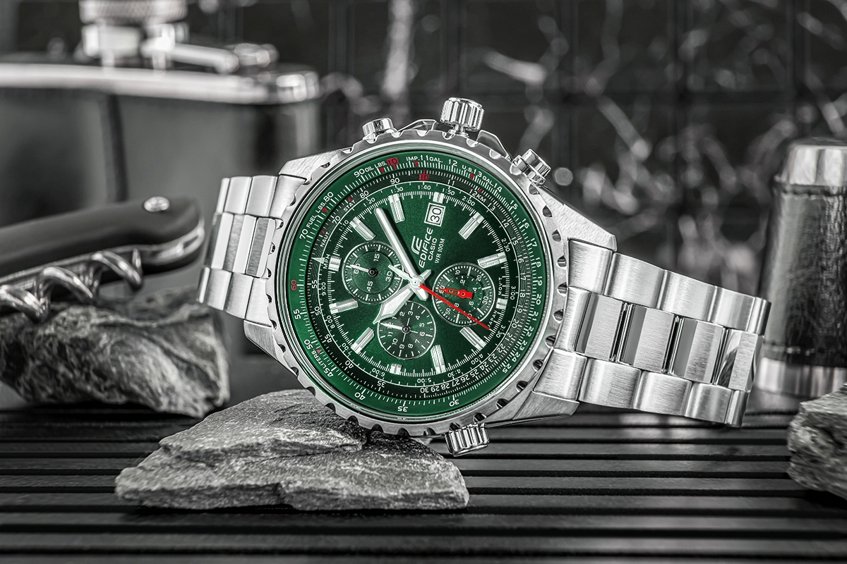 CASIO EDIFICE udowadnia swoją wszechstronność. Bez względu na to, czy postawisz na klasyczny model ze stalową bransoletą, sportowy wariant z elastycznym paskiem, czy elegancką wersję na pasku ze skóry naturalnej – każdy EDIFICE na nadgarstku łączy sportowy styl z wyrafinowanym wyglądem.