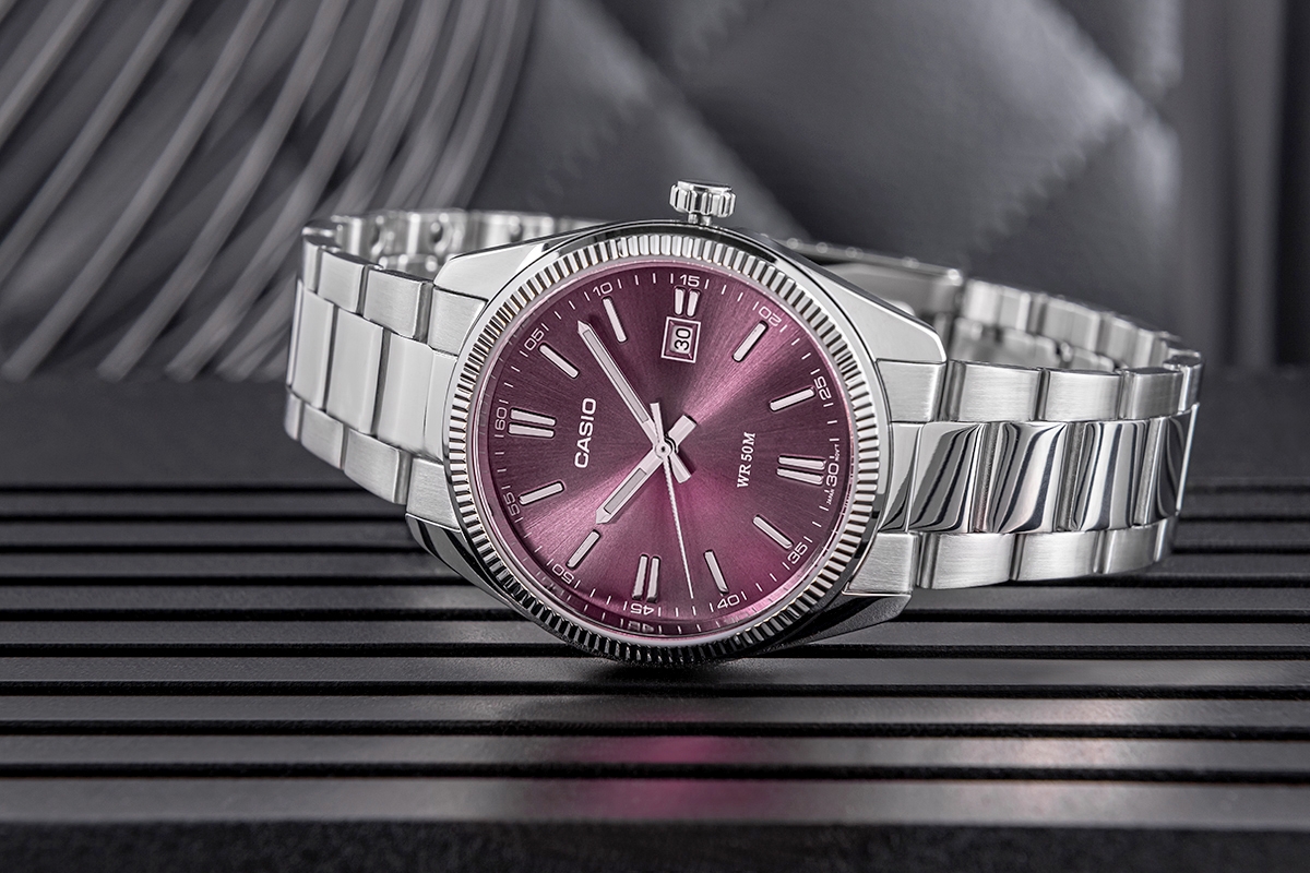 Model należy do kolekcji Casio Classic, która charakteryzuje się eleganckimi, prostymi wzorami stawiającymi na ponadczasowy styl. Srebrna koperta pięknie harmonizuje z fioletową metaliczną tarczą, tworząc ponadczasowy kontrast idealny zarówno do formalnych, jak i codziennych stylizacji. Delikatny połysk srebrnych indeksów i wskazówek, które dodatkowo wypełniono fluorescencyjną powłoką, zapewnia doskonałą czytelność także w warunkach słabego oświetlenia. Całość dopełnia solidna, srebrna bransoleta wykonana ze stali nierdzewnej, która dodaje zegarkowi elegancji i sprawia, że jest on wygodny w noszeniu. Ten harmonijny dobór kolorów i detali sprawia, że model MTP-1302PD-6AVEF stanowi idealne połączenie klasyki i współczesnego stylu.