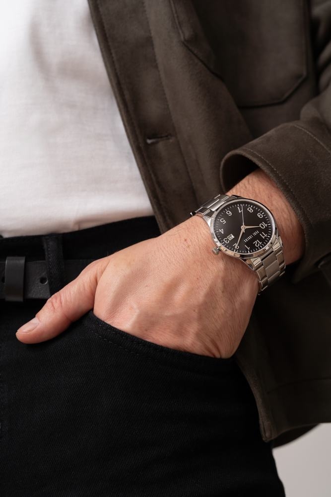 Model z datownikiem dni miesiąca, elegancką srebrną bransoletą oraz czarną tarczą emanuje męskim stylem, tworząc unikalną kompozycję, która wyróżni Cię w każdym towarzystwie. To nie tylko zegarek, to manifest Twojego wyrafinowanego gustu, który przyciąga spojrzenia i wzbudza respekt w każdej sytuacji.
