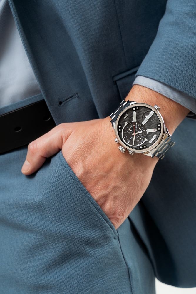 Wykonana z najwyższej jakości stali nierdzewnej to połączenie niezłomnej trwałości i luksusowego wykończenia, które robi wrażenie od pierwszego spojrzenia. Jej mocna, solidna konstrukcja zapewnia niezawodność i pewność, że zegarek będzie leżeć perfekcyjnie, bez względu na to, jak wymagający będzie Twój dzień. Precyzyjnie wykonane zapięcie, opatrzone wytłoczonym logo, dopełnia ten mocny, męski charakter, dodając odrobinę elegancji i prestiżu. Wielostopniowy mechanizm zapięcia zapobiega przypadkowemu odpięciu zegarka.