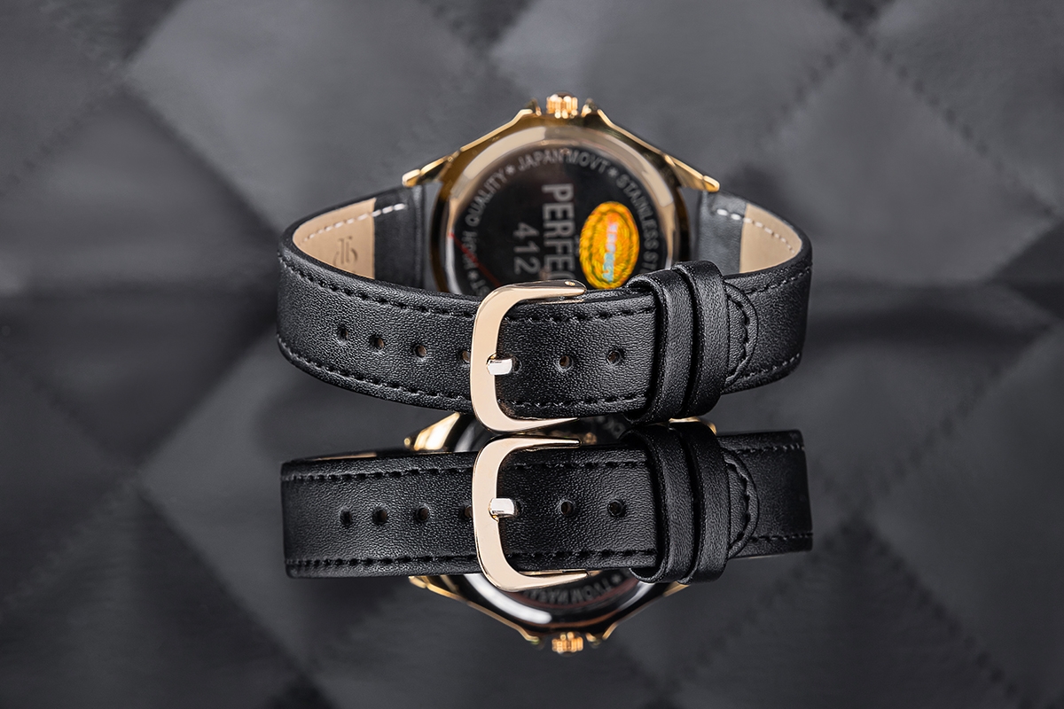Skórzany pasek tego zegarka to kwintesencja klasy i wygody. Wykonany z najwyższej jakości materiału, komfortowo dopasowuje się do nadgarstka, oferując nie tylko trwałość, ale też elegancki wygląd. Jego miękkość zapewnia komfort noszenia na co dzień, a perfekcyjne wykończenie podkreśla charakterystyczny styl marki Perfect.