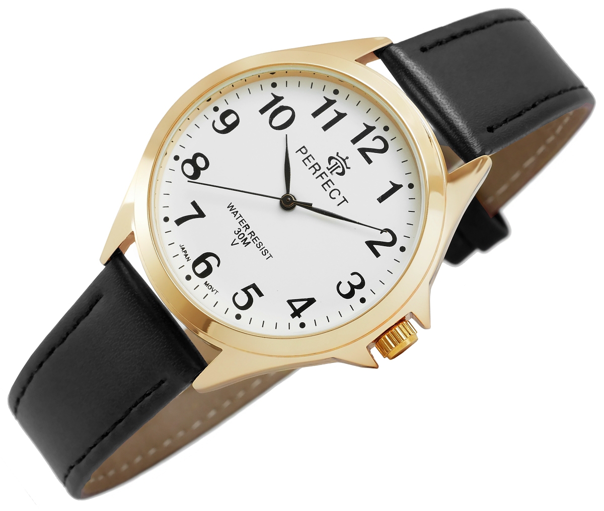 Zegarek Perfect jest odporny na przypadkowe zachlapania i kontakt z wodą, ale nie jest przeznaczony do zanurzenia się w wodzie, np. podczas pływania. Zegarek jest wystarczająco odporny na codzienne sytuacje, takie jak mycie rąk, przypadkowe zachlapania podczas deszczu czy kontakt z wodą podczas mycia naczyń. Zegarki Perfect są zaprojektowane tak, aby wytrzymały różne warunki atmosferyczne, co zwiększa ich trwałość i żywotność.
