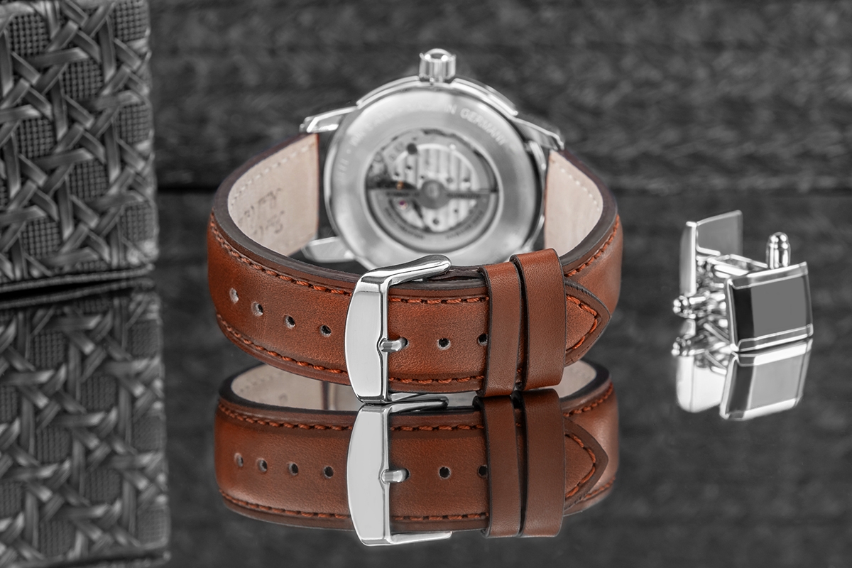 Przezroczysty dekiel, który odsłania precyzyjnie wykonany automatyczny mechanizm, to subtelny detal, który w pełni podkreśla prestiżowy charakter zegarka. Dzięki temu wyjątkowemu rozwiązaniu, możesz podziwiać mistrzowską pracę mechanizmu w każdej chwili, co nadaje zegarkowi jeszcze większego wyrafinowania. Takie rozwiązanie to ukłon w stronę tradycji zegarmistrzowskich, które opierają się na precyzji mechaniki i wysokiej jakości rzemiośle.
