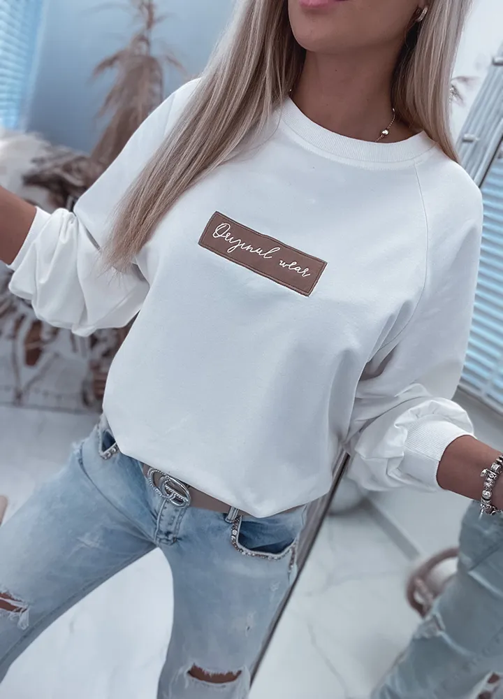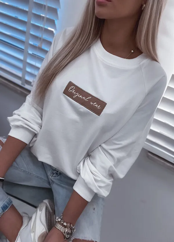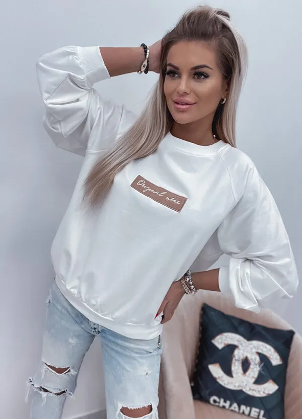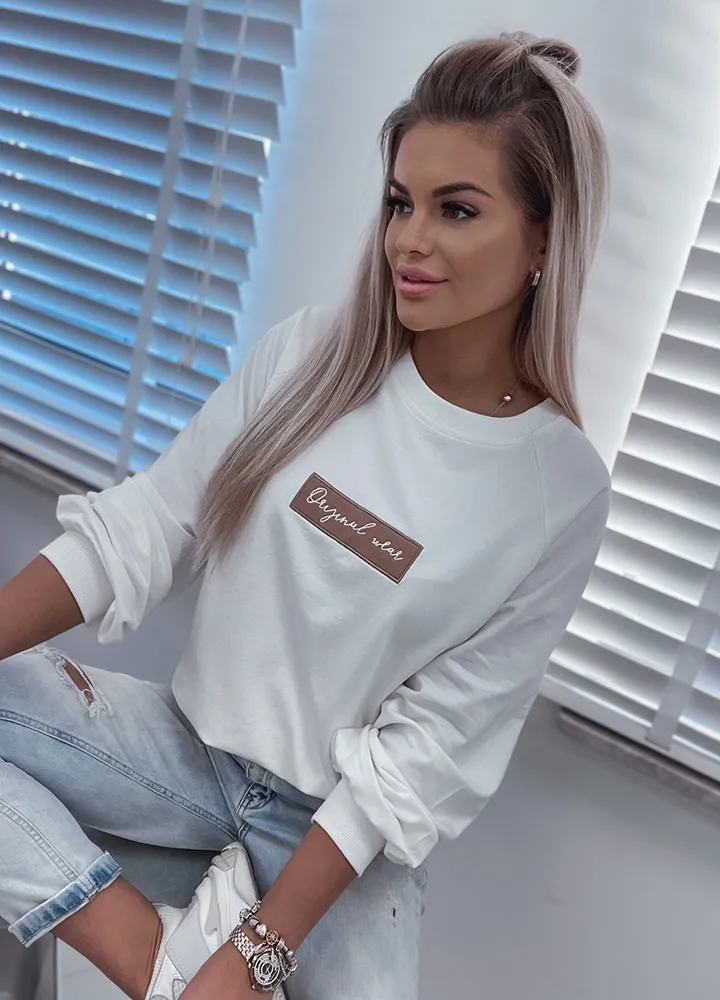 *Шаблон: bluza w kolorze śmietankowym, aplikacja, krój one size.