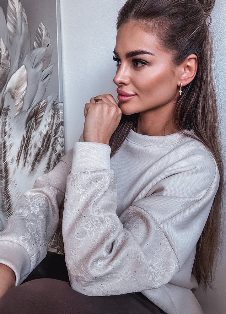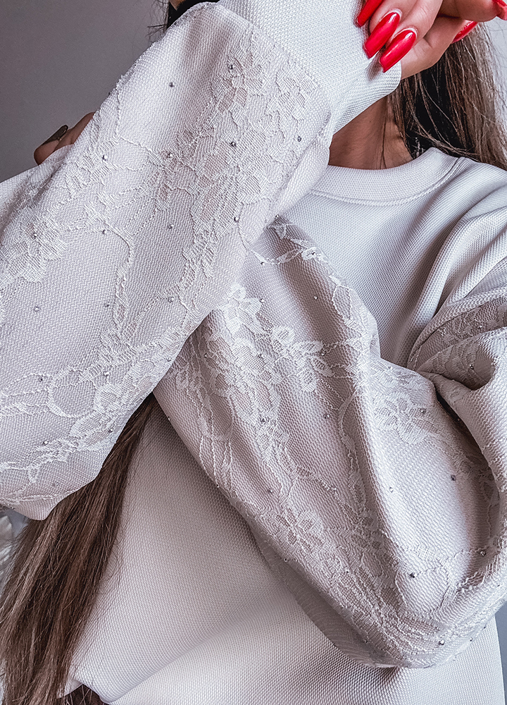*Wzór: bluz z koronkowymi rekawami i cekinami