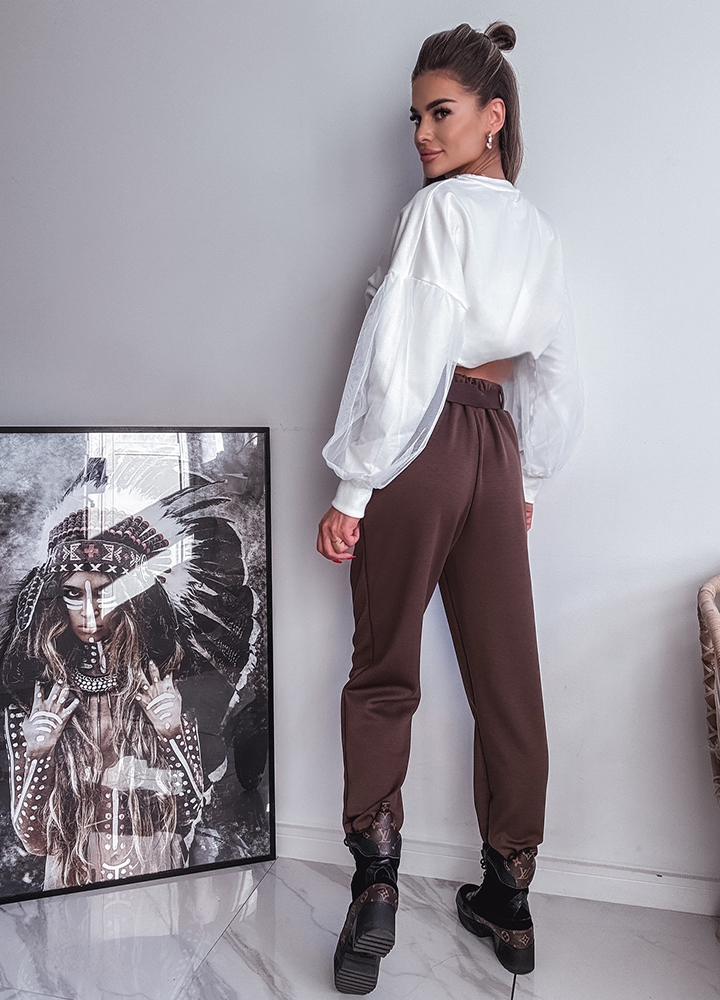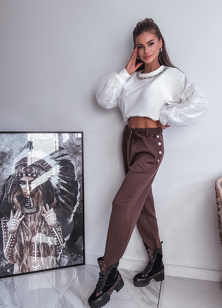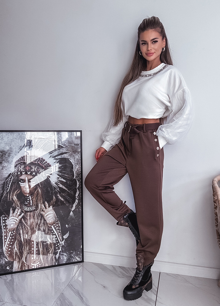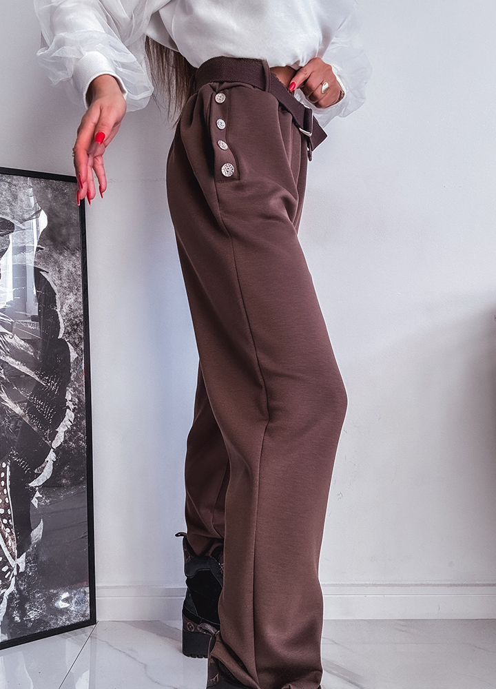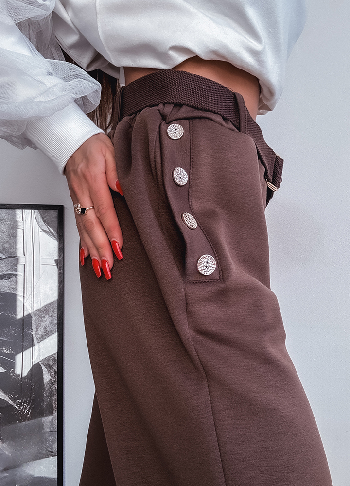 *Szczegóły: spodnie dresowe czekoladowe z paskiem i guzikami złotymi przy kieszeniach