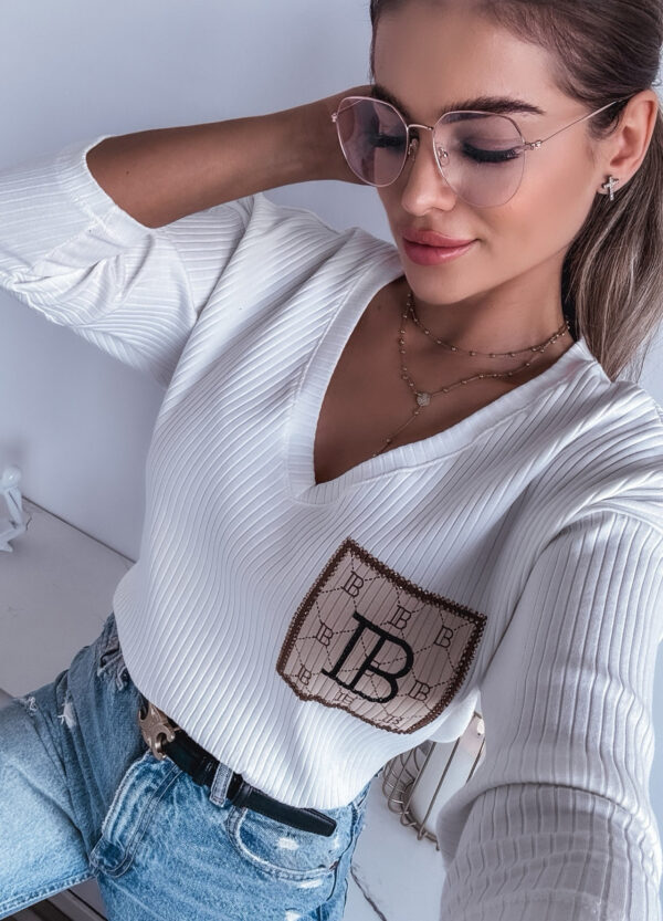 *Шаблон: Bawełniana bluzka prążkowana z ozdobną aplikacją.