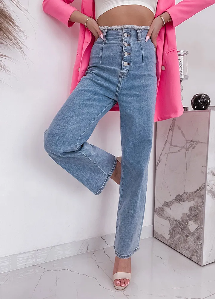 *деталі*: spodnie jeansowe kuloty o prostych nogawkach zapinane na guziki.
