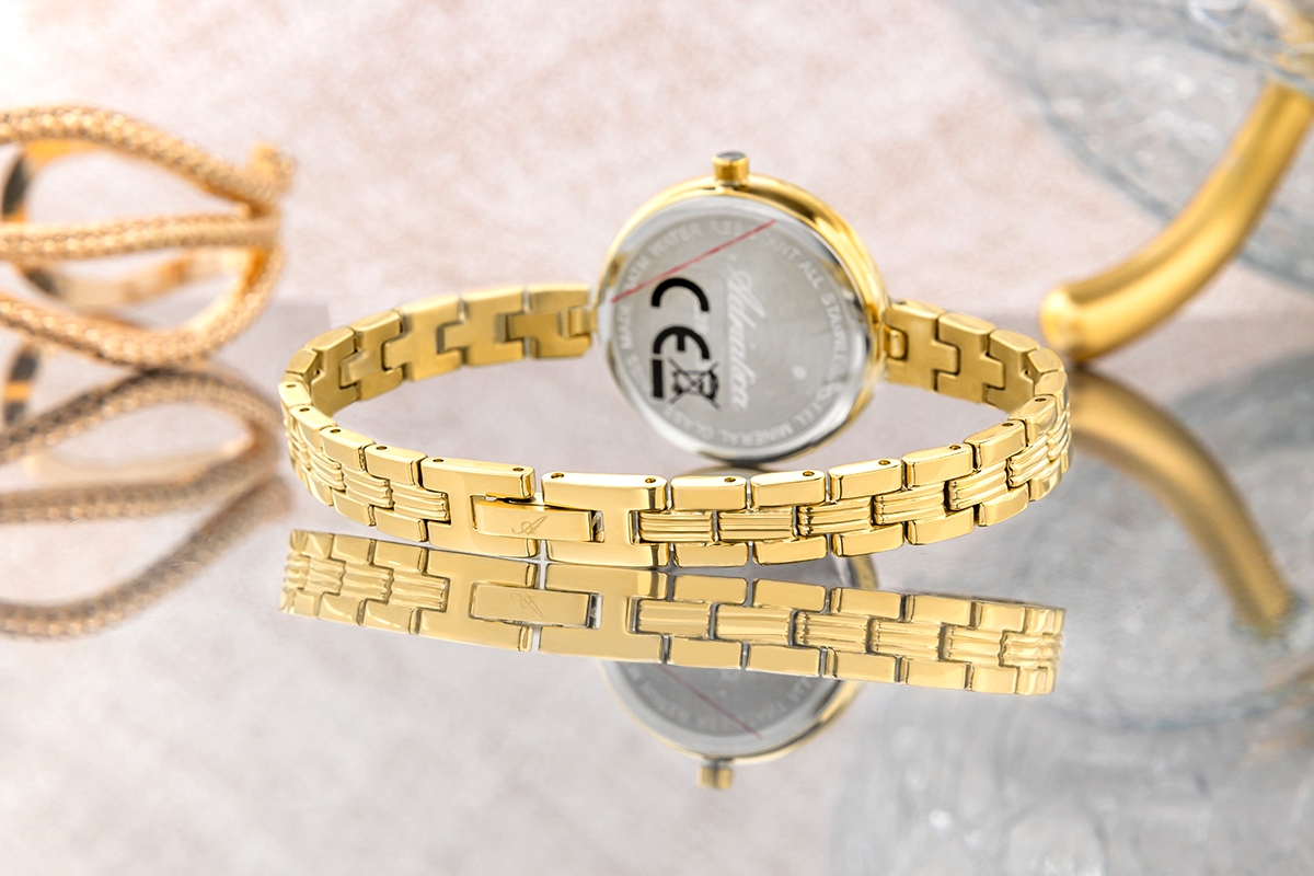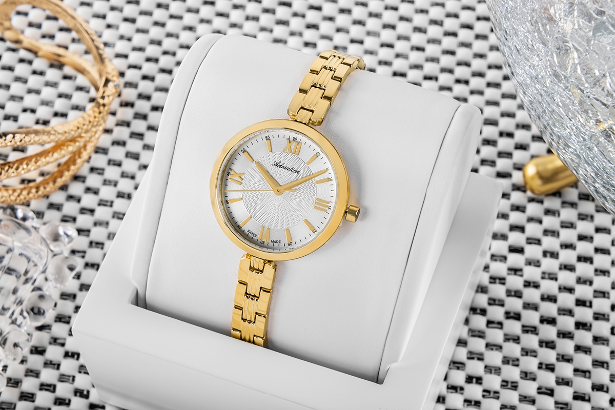 Precyzyjne wskazówki, złote rzymskie indeksy i tarcza, która miękko odbija światło – wszystko razem tworzy kompozycję, od której trudno oderwać wzrok. Wysokiej jakości materiały, dopracowane z zegarmistrzowską precyzją detale i perfekcyjnie skomponowana kolorystyka – zegarek Adriatica nosi się jak biżuterię, a każdy rzut oka na nadgarstek staje się estetycznym przeżyciem. Całość dopełniają: nazwa Adriatica na tarczy, i dyskretne logo na zapięciu bransolety oraz na koronce zegarka.