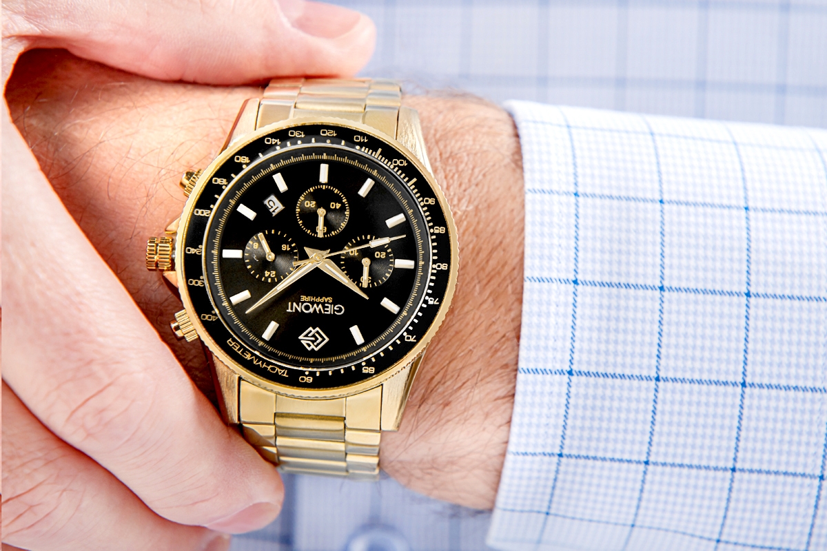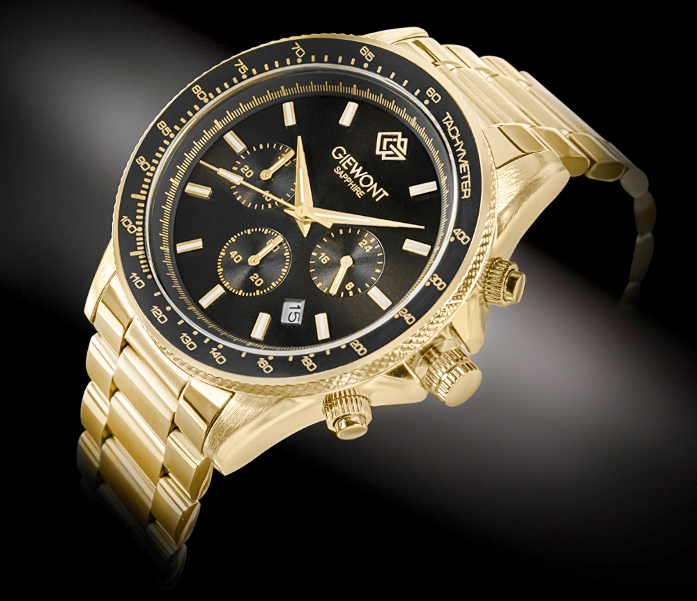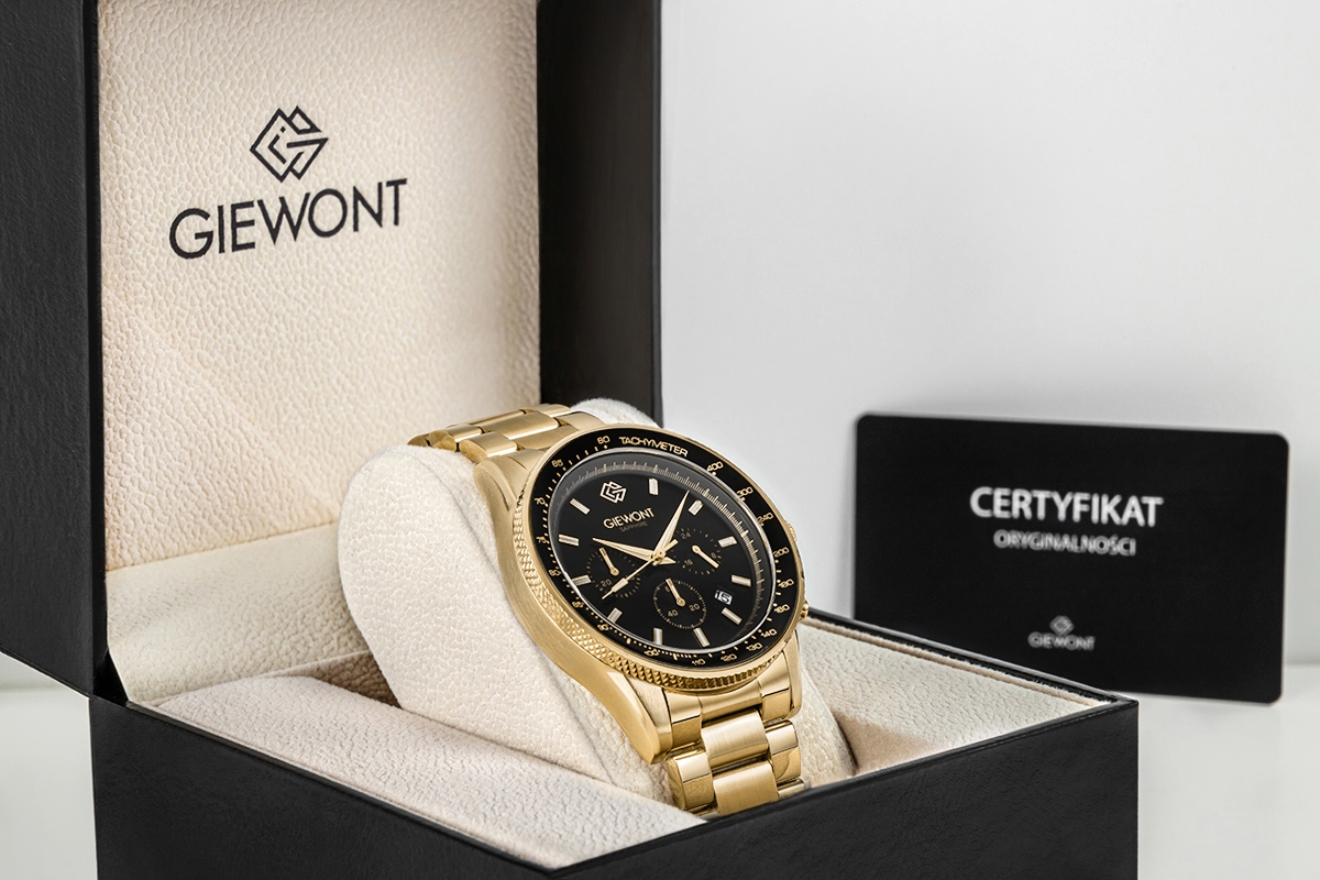Zegarek Męski Giewont Chronograph Sapphire Złoto Czarny GW3520-B4