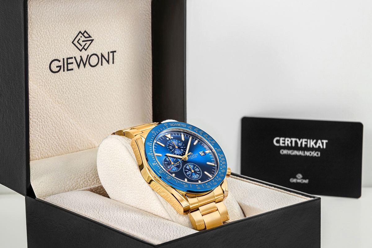 Zegarek Męski Giewont Chronograph Sapphire Złoto Niebieski GW8720-B6