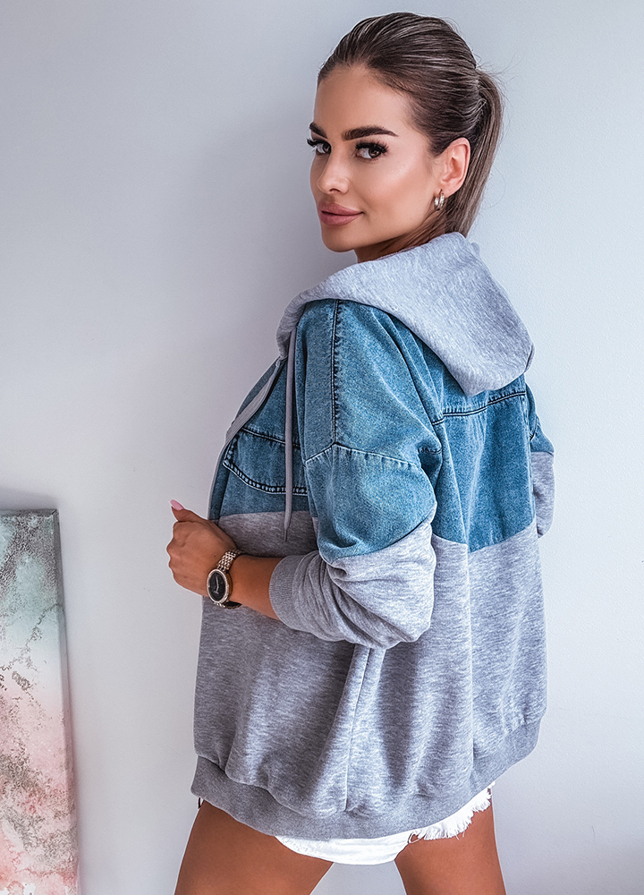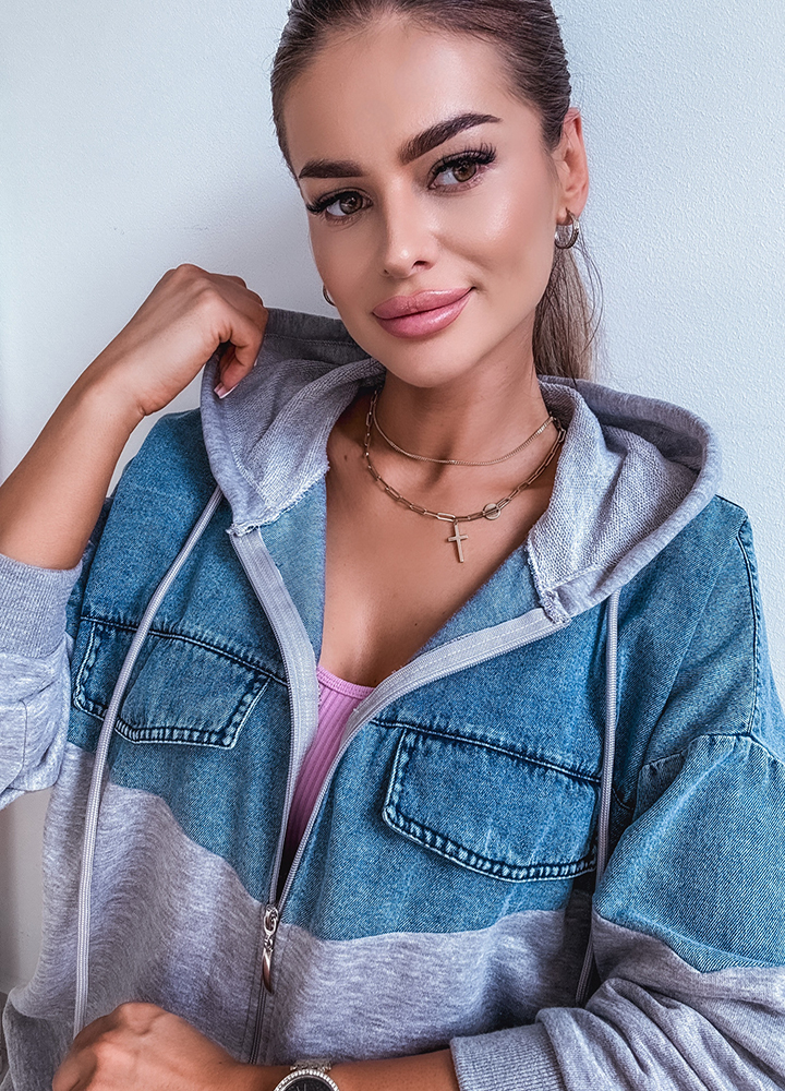 *Шаблон: bluza zapinana na zamek z kapturem uszyta z dwóch materiałów