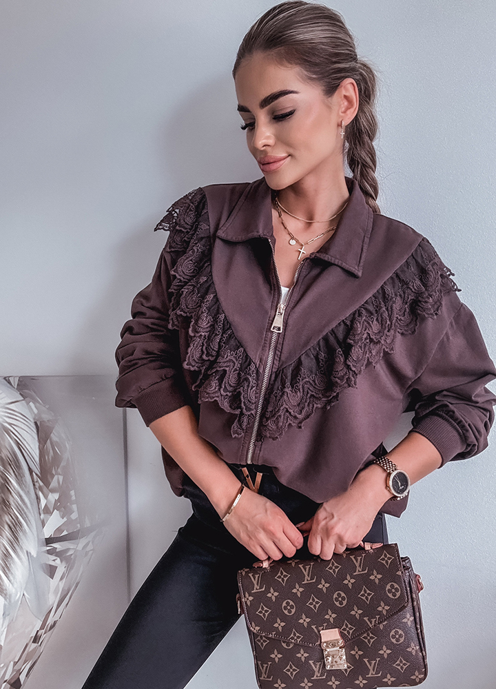 *Wzór: Bluza zapinana na zamek ozdobiona koronką