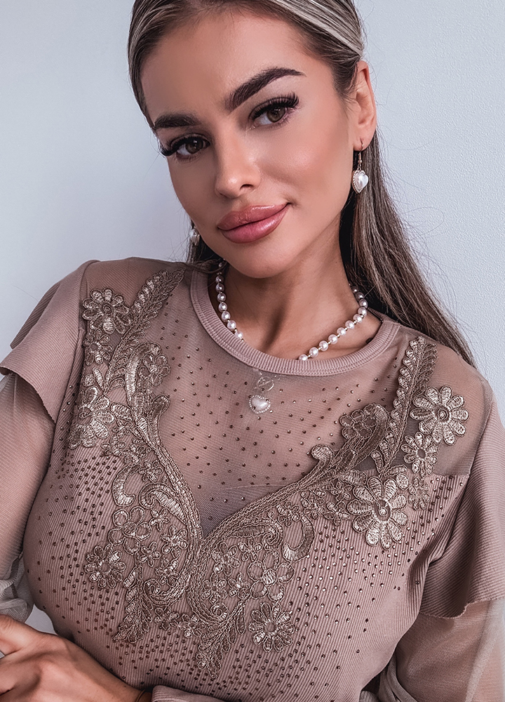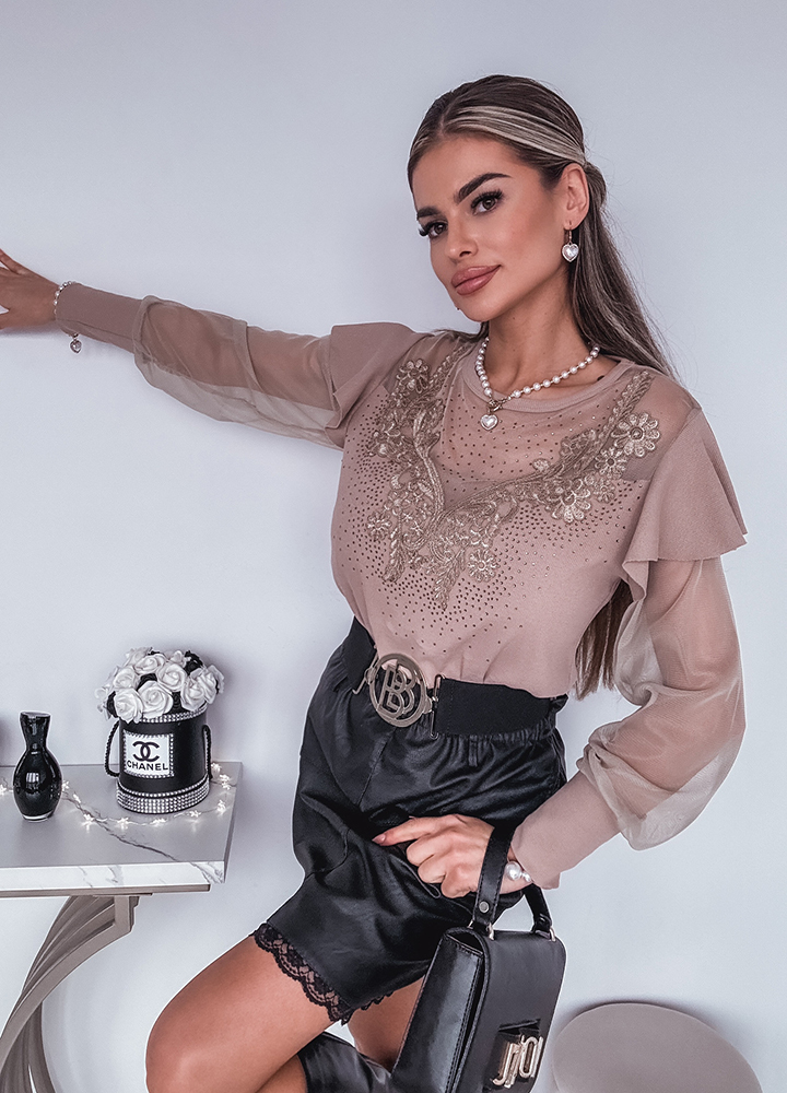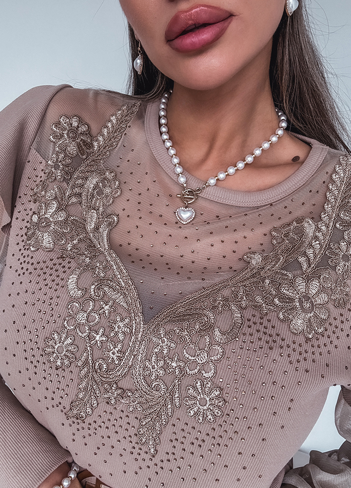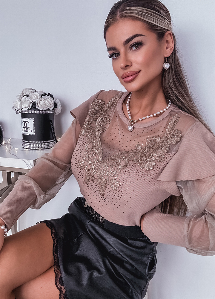 *Шаблон: bluzka z efektownym dekoltem z cekinami i rękawami tiulowymi