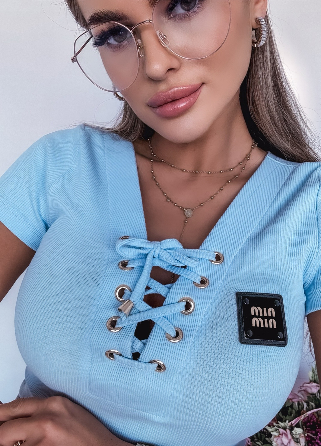 *Шаблон: Bawełniany t-shirt prążkowany z wiązanym dekoltem.