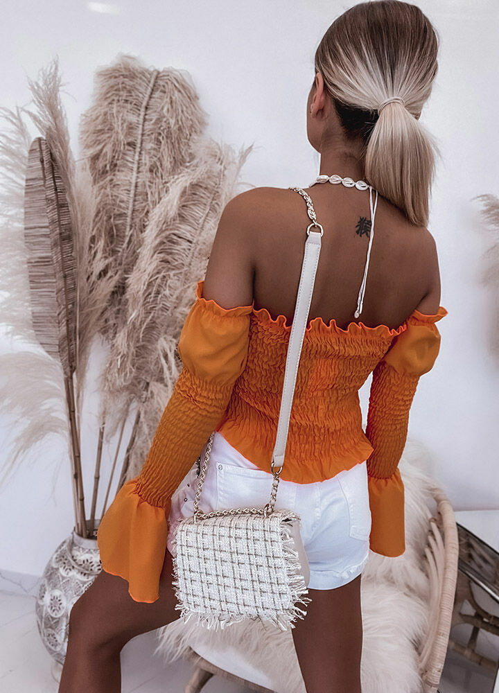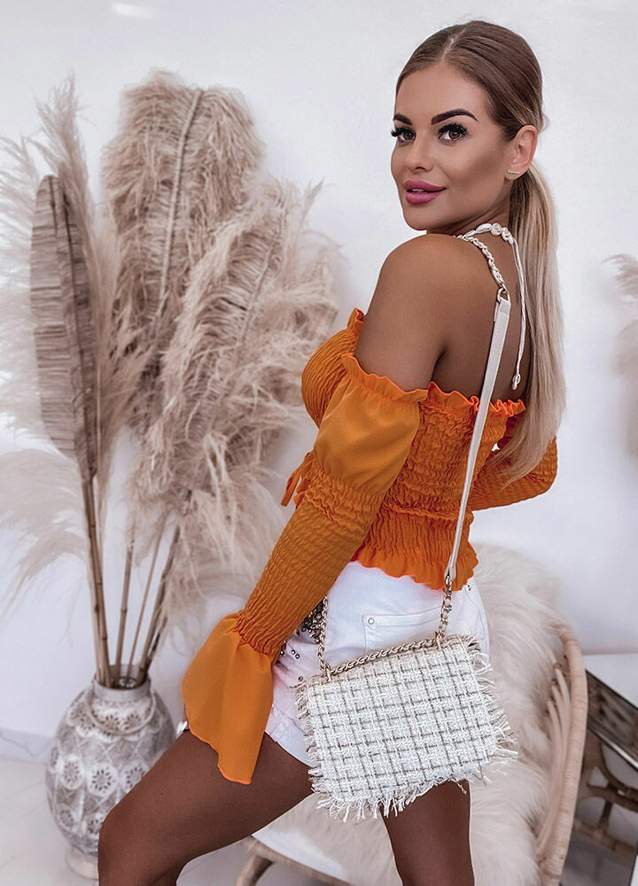 *Шаблон: bluzka hiszpanka ze ściagaczem w kolorze pomarańczowym.