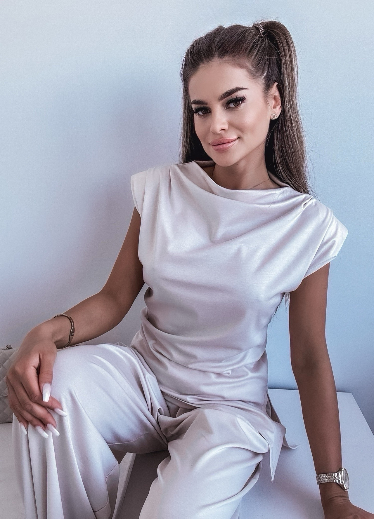 *Деталі: Letni komplet. Bluzka + spodnie z szeroką nogawką w kolorze baby blue.