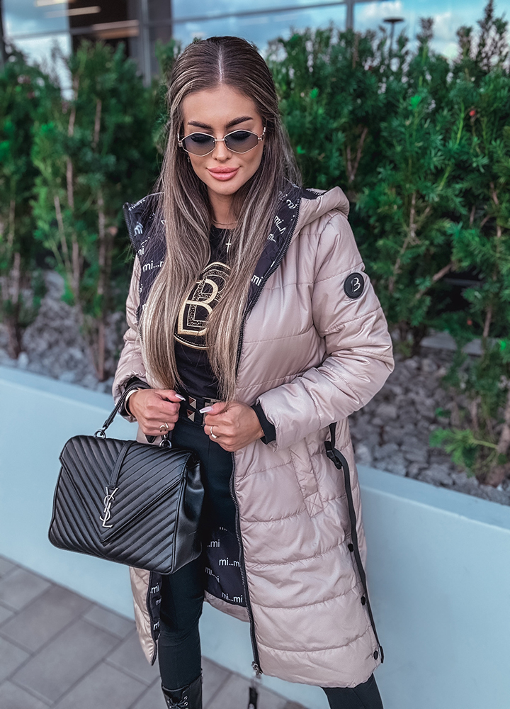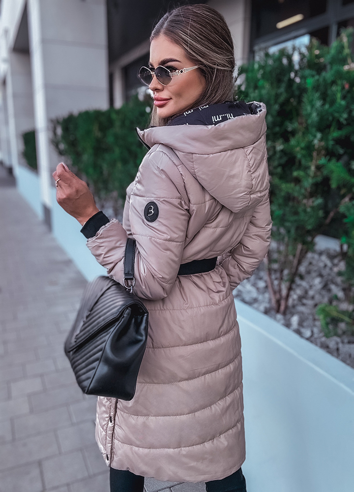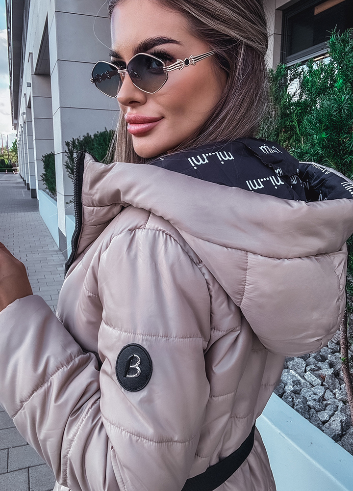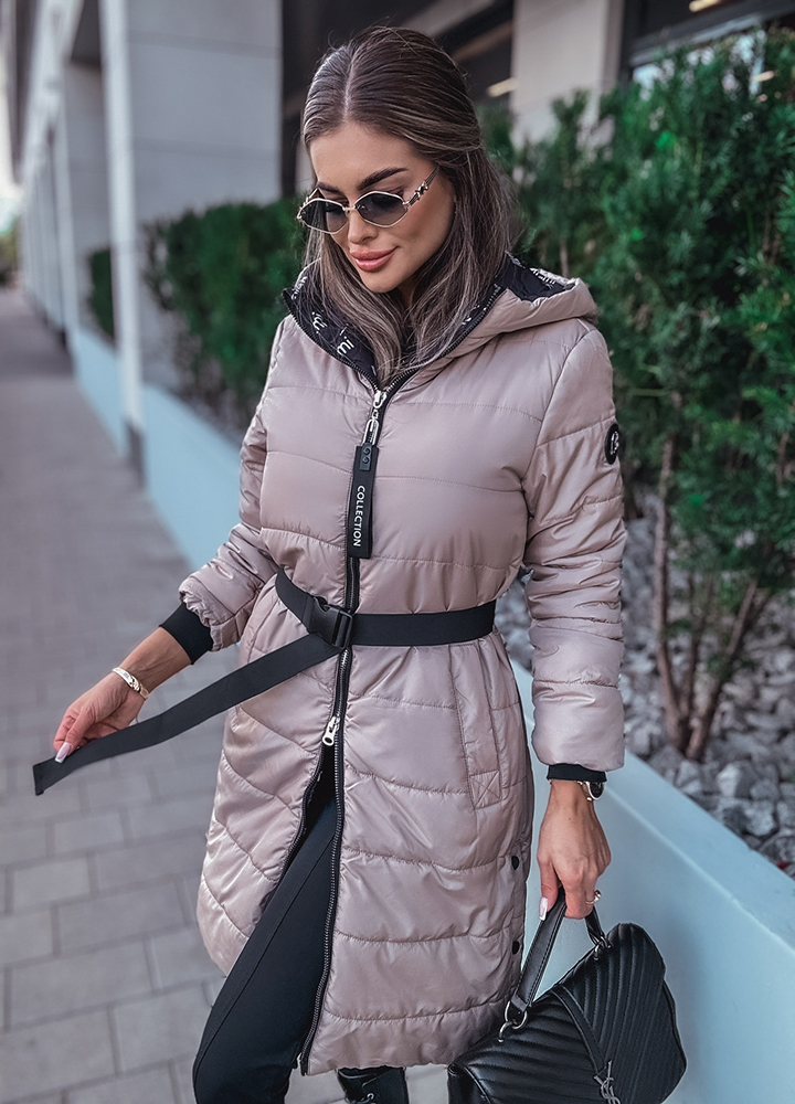 *Wzór: Modny płaszczyk z kapturem i paskiem zapinany na zamek