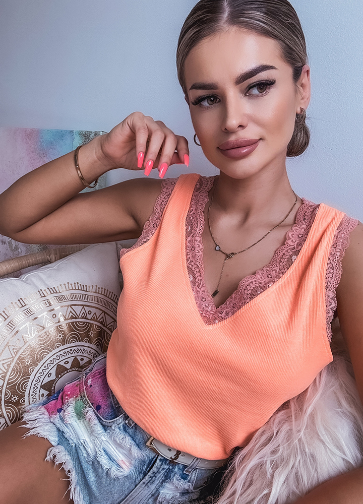 Дизайн: bluzka z efektownie zdobionym dekoltem koronką