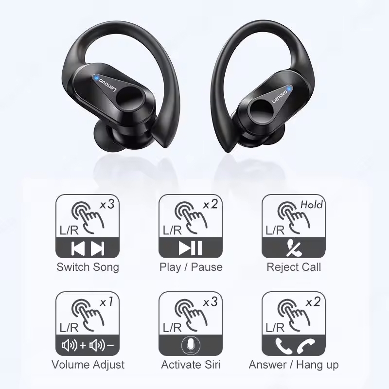 Słuchawki Lenovo są całkowicie bezprzewodowe, komunikują się między sobą za pomocą technologii bezprzewodowej Bluetooth, co zapewnia pełną swobodę ruchu i mobilność, bez uciążliwych kabli.