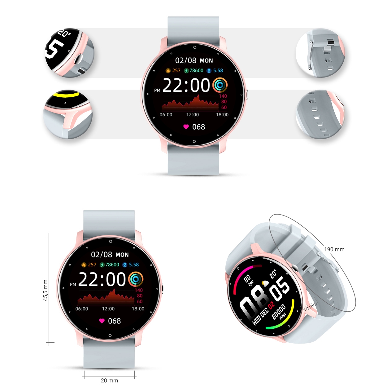 Ekran: Wyświetlacz dotykowy, 1,28 cala Retina HD, rozdzielczość: 240*240 pikseli- w pełni dotykowy