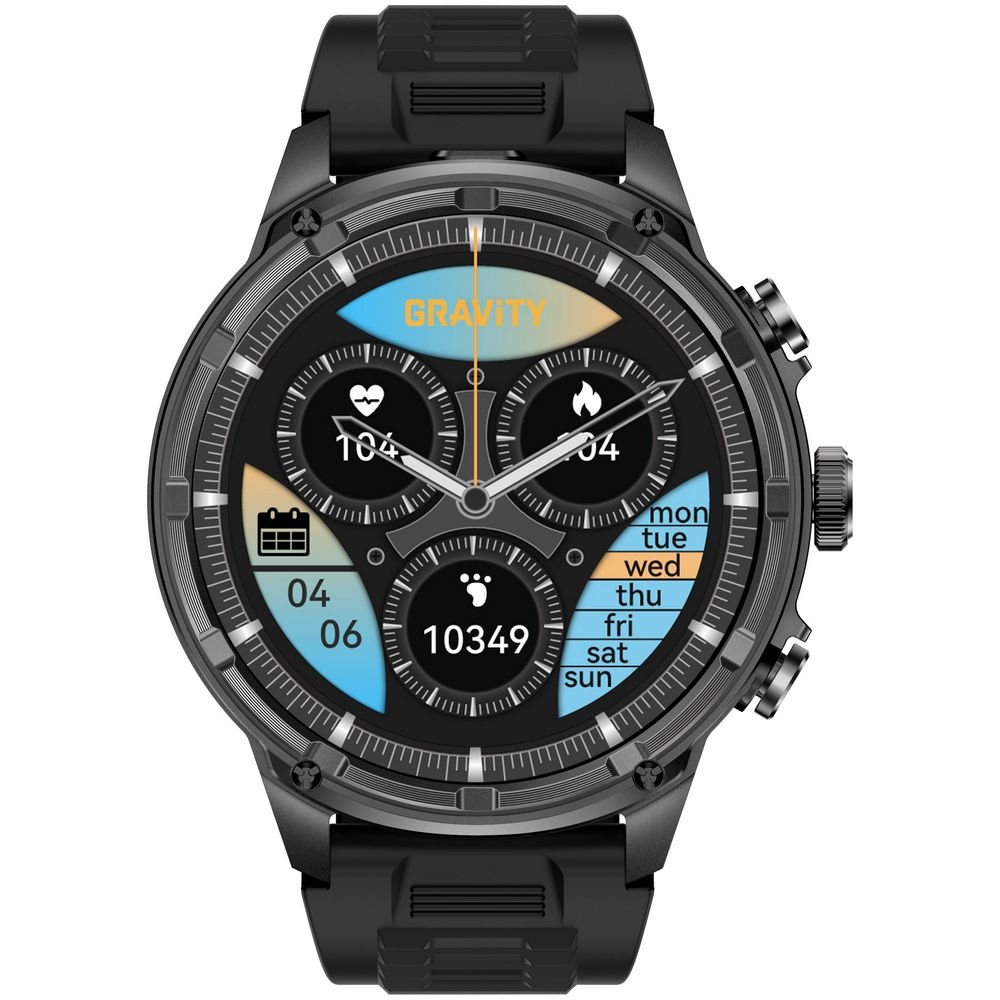 Marka GRAVITY to więcej niż smartwatch – to partner, który towarzyszy Ci w każdym ruchu, pulsie i myśli. Stworzony dla osób, które żyją aktywnie, cenią innowacje i nie boją się wyzwań, łączy nowoczesny design z najnowszą technologią, pomagając osiągać więcej każdego dnia. Zorganizowany co do minuty, monitoruje Twój rytm dobowy, przypomina o aktywności i troszczy się o zdrowie, oferując zaawansowane funkcje śledzenia parametrów ciała.