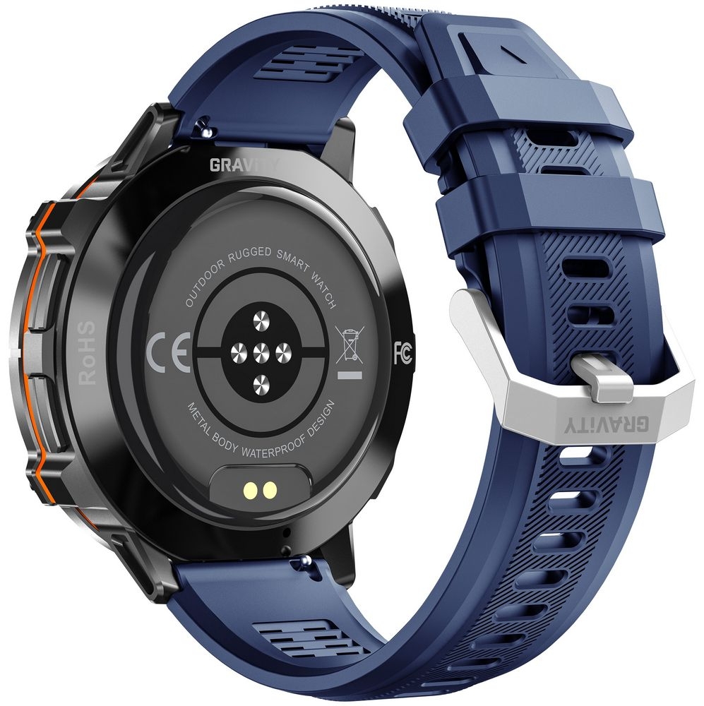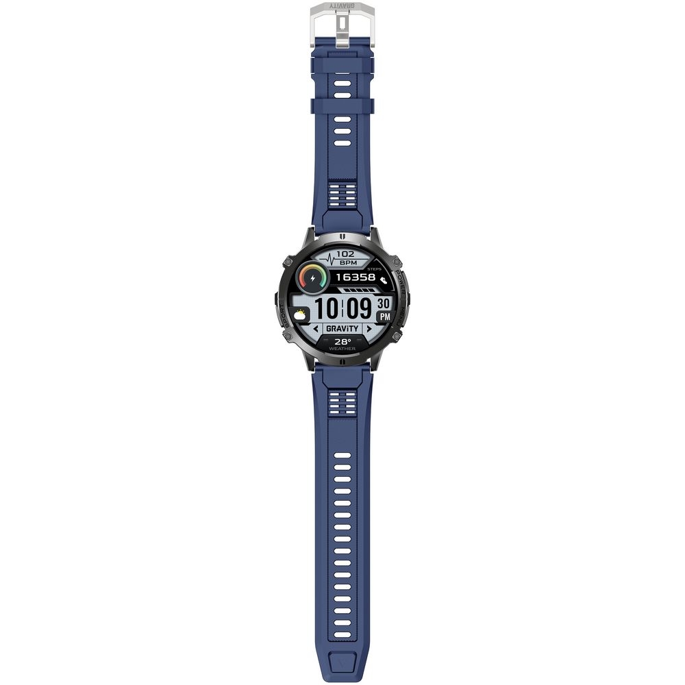 Gravity GT42-2 smartwatch męski został stworzony dla osób, które cenią funkcjonalność, wygodę i nowoczesny wygląd. W zestawie znajduje się niebieski pasek silikonowy oraz dodatkowa czarna bransoleta, dzięki czemu możesz łatwo dopasować zegarek do okazji. Na silikonowym pasku model zyskuje bardziej sportowy i praktyczny charakter, idealny na co dzień, spacer, trening czy wyjazd. Po założeniu bransolety prezentuje się bardziej elegancko, nowocześnie i solidnie.