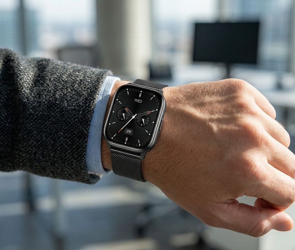 To model dla osób, które chcą mieć na nadgarstku coś więcej niż zwykły zegarek. Smukła forma, kontrastowa kolorystyka i estetyczne tarcze sprawiają, że GT43-5 świetnie wpisuje się zarówno w styl miejski, jak i bardziej sportowy. Na zdjęciach widać także funkcje związane z codzienną aktywnością, takie jak monitoring tętna, licznik kroków oraz dane widoczne na ekranie, co dodatkowo podkreśla jego praktyczny charakter.