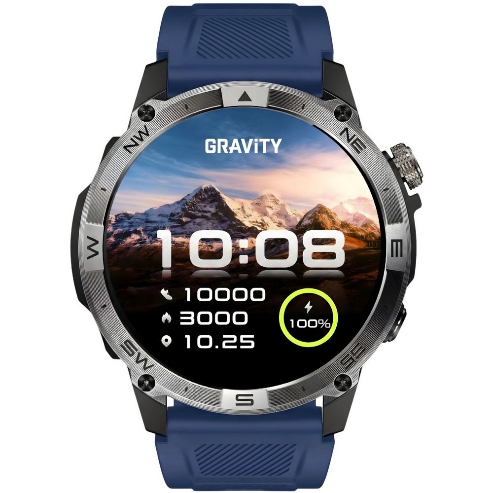 Dużym atutem tego modelu są również funkcje przydatne podczas wypraw i codziennego użytkowania. Kompas ułatwia orientację w terenie, barometr wysokościowy podkreśla outdoorowy charakter zegarka, a czas światowy pozwala wygodnie kontrolować godzinę w różnych strefach czasowych. Dzięki temu Gravity GT46-2 świetnie sprawdzi się nie tylko jako stylowy smartwatch, ale także jako praktyczny towarzysz aktywnego dnia.