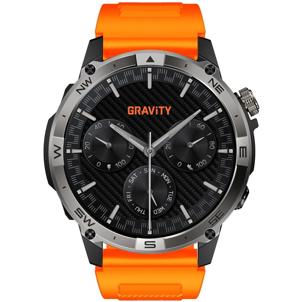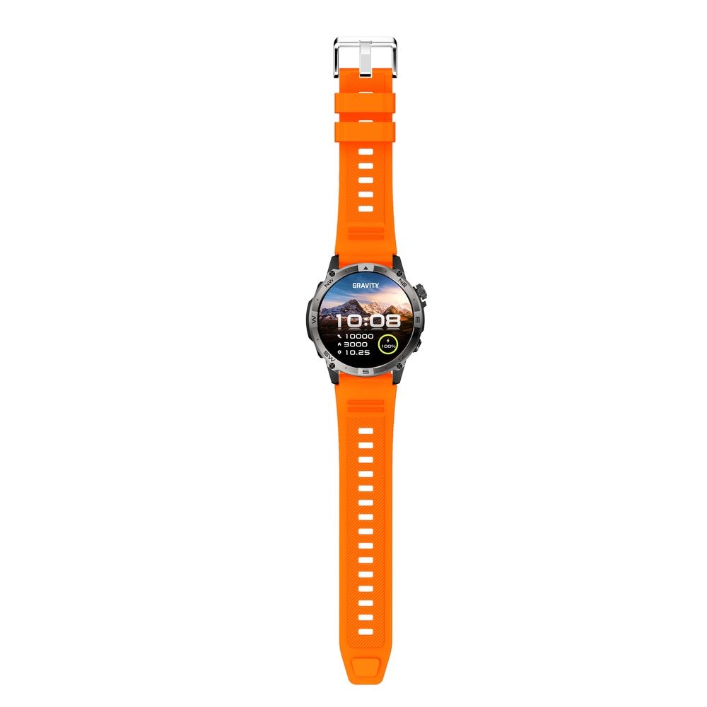 Dużym atutem tego modelu są również funkcje przydatne podczas wypraw i codziennego użytkowania. Kompas ułatwia orientację w terenie, barometr wysokościowy podkreśla outdoorowy charakter zegarka, a czas światowy pozwala wygodnie kontrolować godzinę w różnych strefach czasowych. Dzięki temu Gravity GT46-4 świetnie sprawdzi się nie tylko jako stylowy smartwatch, ale także jako praktyczny towarzysz aktywnego dnia.