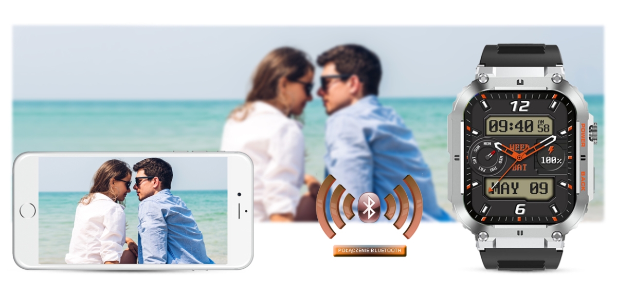 Ten smartwatch możesz połączyć ze swoim Smartfonem. Kompatybilność z systemem Android 5.0 i nowszy oraz iOS 8.0 i nowszy. Oznacza to, że smartwatch połączy się ze wszystkimi telefonami na systemie ANDROID i iOS.