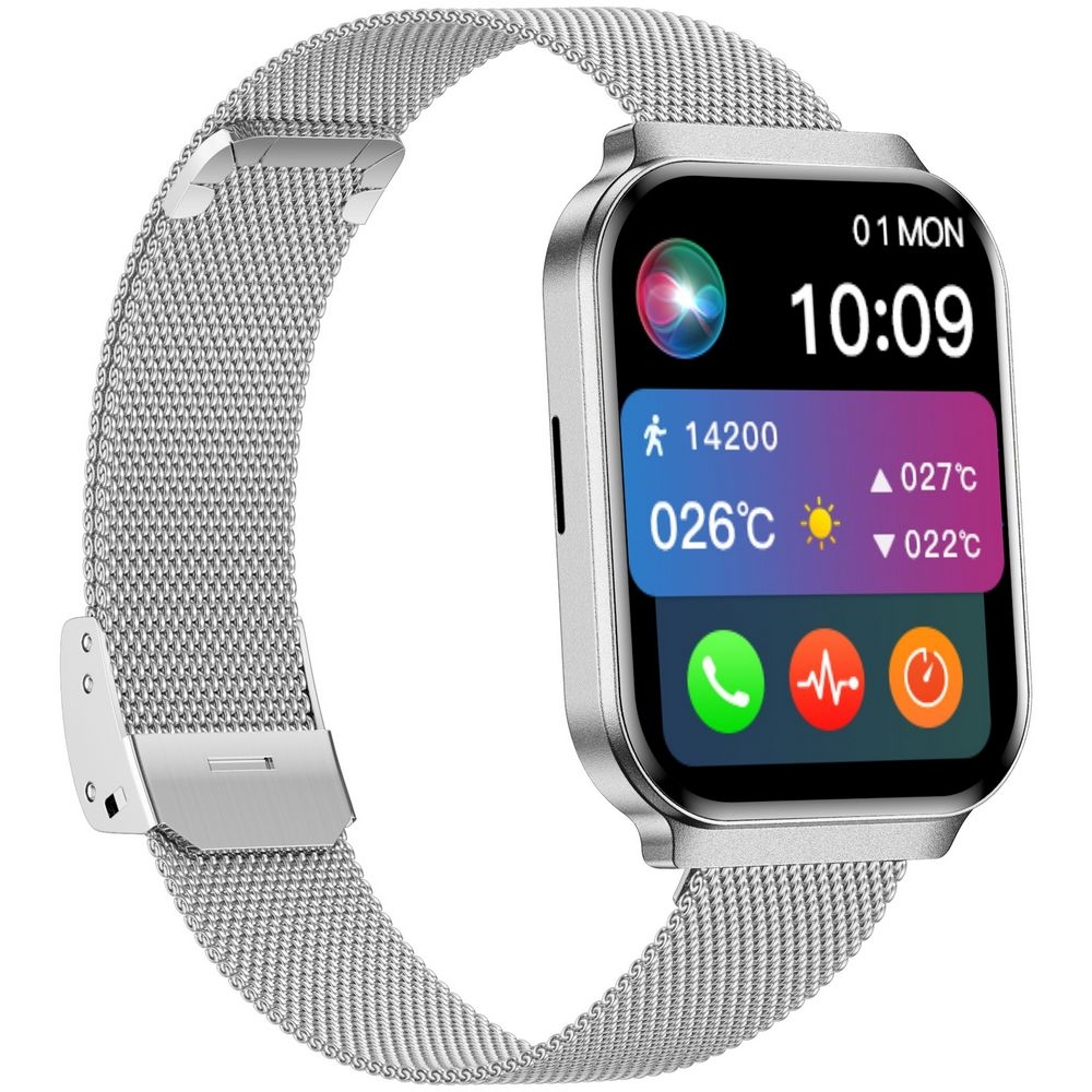 Smartwatch damski Gravity GT44-4 to idealne połączenie subtelnej elegancji, nowoczesnego stylu i codziennej wygody. Ten stylowy smartwatch z prostokątną kopertą zachwyca smukłą, kobiecą formą i pięknie prezentuje się na nadgarstku. Srebrna koperta nadaje mu nowoczesnego, świeżego charakteru, a w zestawie znajduje się biały pasek silikonowy oraz dodatkowa srebrna bransoleta mesh, dzięki czemu z łatwością dopasujesz zegarek do codziennych stylizacji, pracy, spacerów czy bardziej eleganckich okazji.