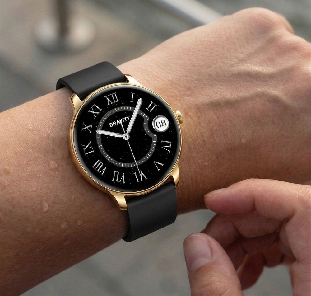 Gravity GT31-2 smartwatch damski został stworzony dla kobiet, które chcą wyglądać modnie i czuć się komfortowo każdego dnia. Na czarnym pasku silikonowym prezentuje się lekko, świeżo i nowocześnie, a po zmianie na złotą bransoletę zyskuje bardziej szykowny, biżuteryjny charakter. To model, który świetnie uzupełnia zarówno codzienne stylizacje, jak i bardziej elegancki outfit.