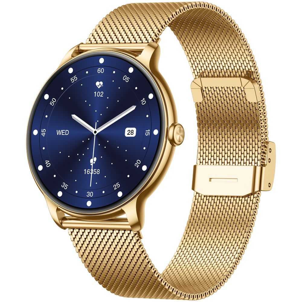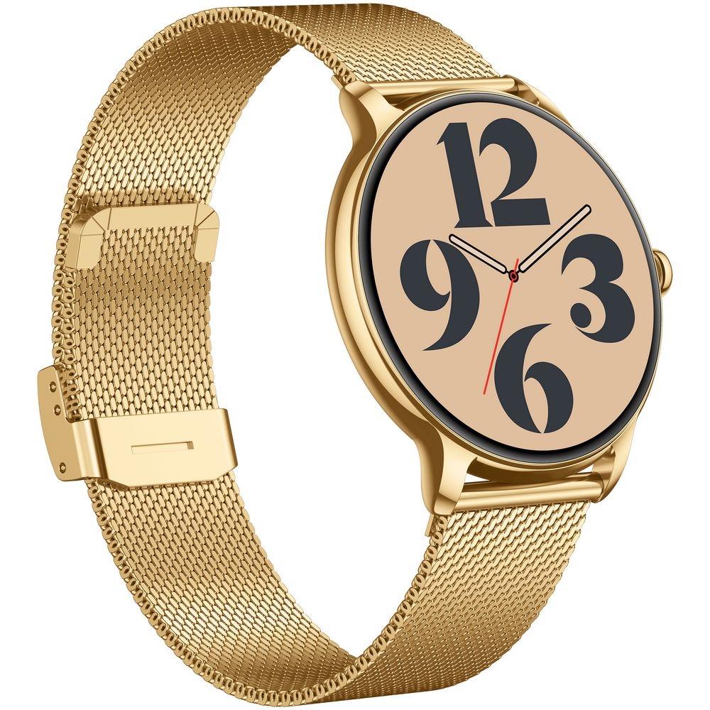 Smartwatch damski Gravity GT31-2 to idealne połączenie stylu, elegancji i codziennej wygody. Ten kobiecy smartwatch ze złotą kopertą zachwyca subtelnym wyglądem i pięknie prezentuje się na nadgarstku. Na co dzień model wyposażony jest w czarny pasek silikonowy, a w zestawie znajduje się również dodatkowa elegancka złota bransoleta mesh, dzięki czemu z łatwością dopasujesz zegarek do pracy, spotkania, spaceru czy treningu.