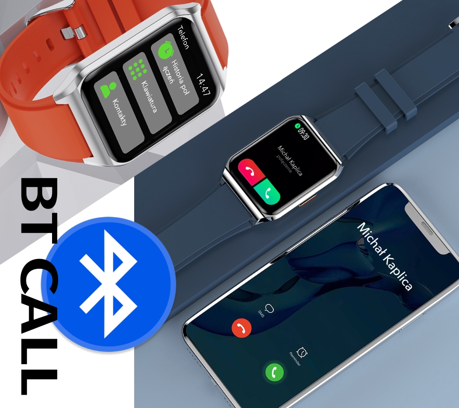Bluetooth Call z mikrofonem i głośnikiem to Twoja sekretna broń – odbierasz i wykonujesz połączenia bez sięgania po telefon, a szybki przełącznik BT call w zegarku daje Ci kontrolę jednym ruchem palca.