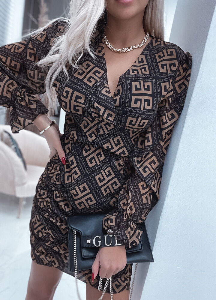 *Шаблон: sukienka z marszczeniem, dopasowana, taliowana. Wzór grecki print.