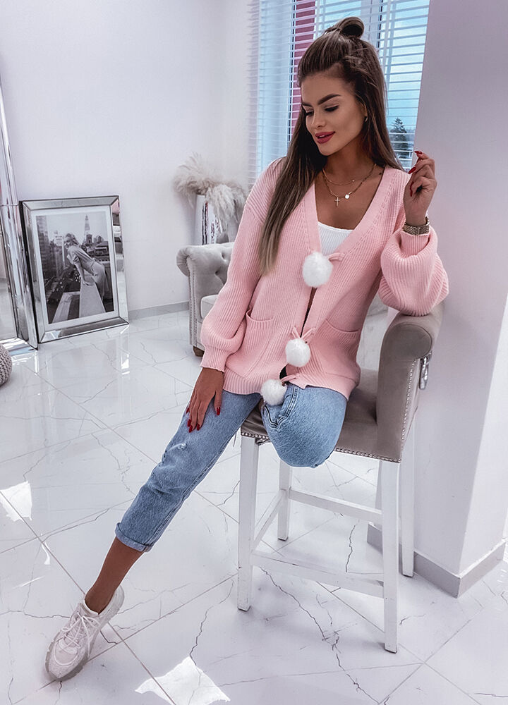 *Шаблон: Dłuższy sweter w kolorze pudrowy róż, zapinany na guziki