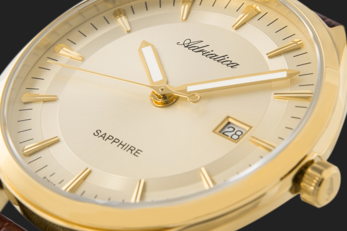 Szkło szafirowe w zegarkach ADRIATICA to synonim niezrównanej odporności na zarysowania i krystalicznej przejrzystości. Dzięki swojej wyjątkowej twardości, dorównującej diamentowi, skutecznie chroni tarczę przed uszkodzeniami i codziennym zużyciem. Jego antyrefleksyjna powłoka minimalizuje odbicia światła, zapewniając doskonałą czytelność w każdych warunkach.