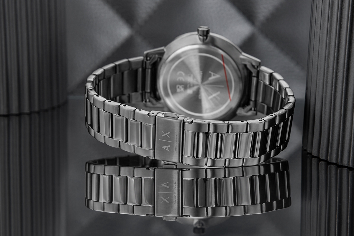Bransolety zegarków Armani Exchange wykonane z najwyższej jakości stali nierdzewnej, łączą w sobie surową wytrzymałość z elegancją, która przyciąga spojrzenia. Ich solidna konstrukcja to nie tylko symbol niezawodności, ale też pewność, że zegarek będzie trzymać się mocno na nadgarstku, bez względu na wyzwania dnia. Precyzyjne, bezpieczne zapięcie z logo A|X.