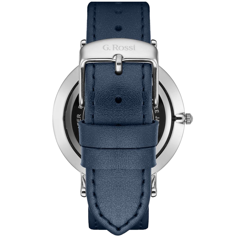 Wykonany z naturalnej skóry najwyższej jakości, już przy pierwszym dotyku zachwyca swoją miękkością i jakością wykonania. To nie tylko elegancki dodatek, ale prawdziwy kompan codziennych wyzwań – idealnie dopasowuje się do nadgarstka, gwarantując wygodę noszenia przez cały dzień. Skóra, z której został stworzony, pięknie się starzeje – z biegiem czasu nabiera charakteru, stając się jeszcze bardziej unikatowym. Naturalna skóra oddycha, dzięki czemu noszenie zegarka G.Rossi na pasku jest wyjątkowo komfortowym doświadczeniem.