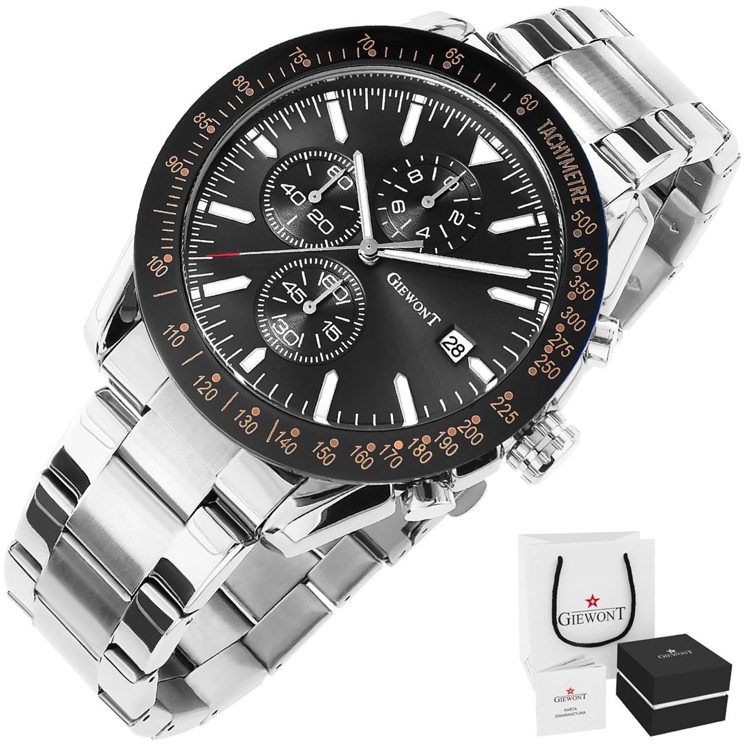 Zegarek męski Giewont GW8620-1 wyposażony jest w chronografy sekund stopera, minut stopera, trybu czasu 24-godzinnego oraz datownik dni miesiąca.
