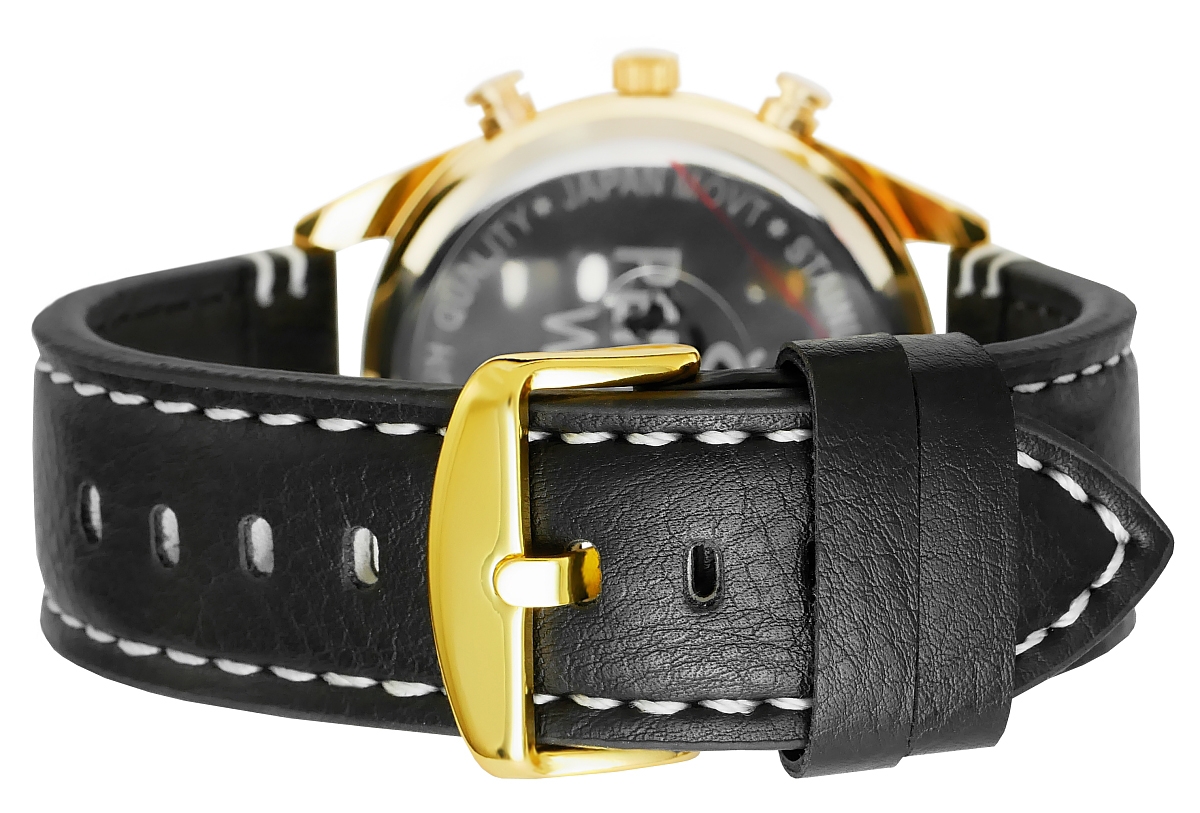 - Tarcza: Analogowa z chronografami, które pełnią tylko funkcję ozdobną i nie są aktywne