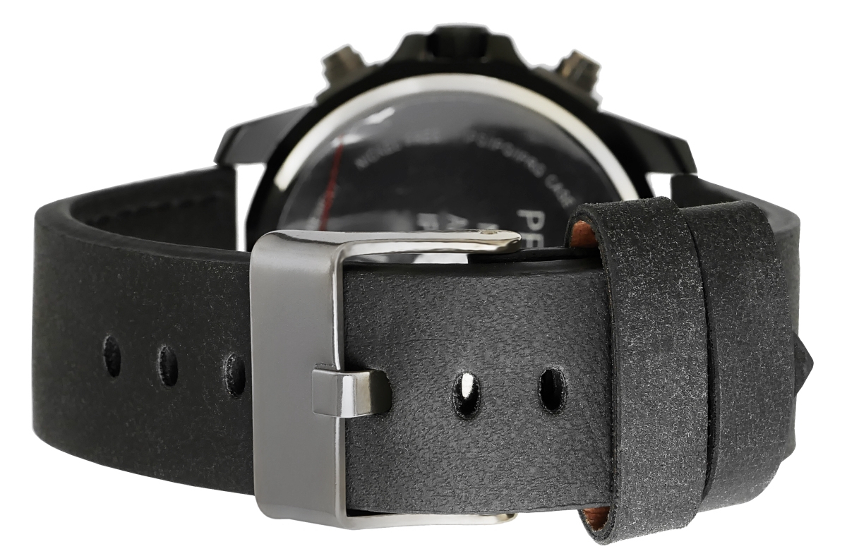 - Tarcza: Małe zegary na tarczy pełnią funkcję ozdobną – nieruchome imitacje wskazań chronografu.