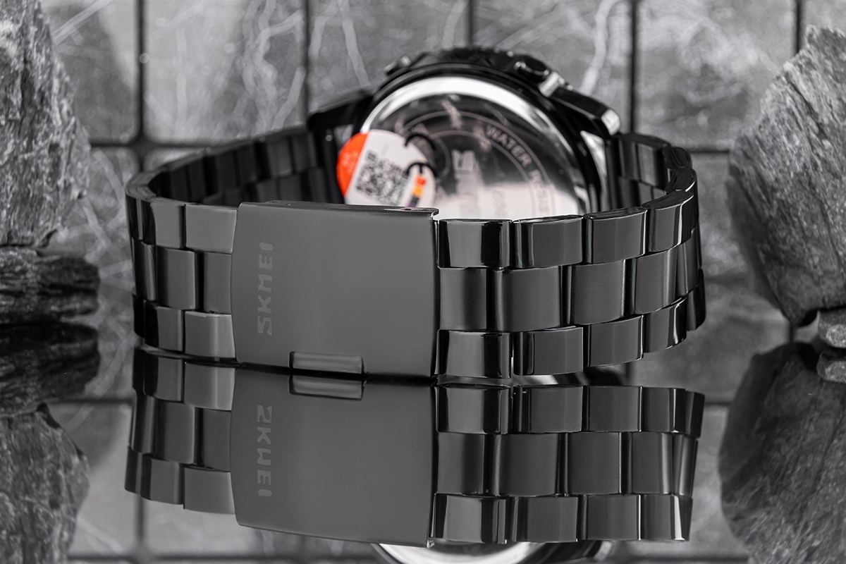 Bransolety zegarków Skmei wykonane z najwyższej jakości stali nierdzewnej, łączą w sobie surową wytrzymałość z elegancją, która przyciąga spojrzenia. Ich solidna konstrukcja to nie tylko symbol niezawodności, ale też pewność, że zegarek będzie trzymać się mocno na nadgarstku, bez względu na wyzwania dnia. Precyzyjne, bezpieczne zapięcie z detalem logo Skmei dodaje całości klasy i wyjątkowego charakteru, tworząc bransoletę, która jednocześnie podkreśla siłę i styl – bez kompromisów.