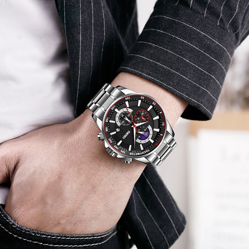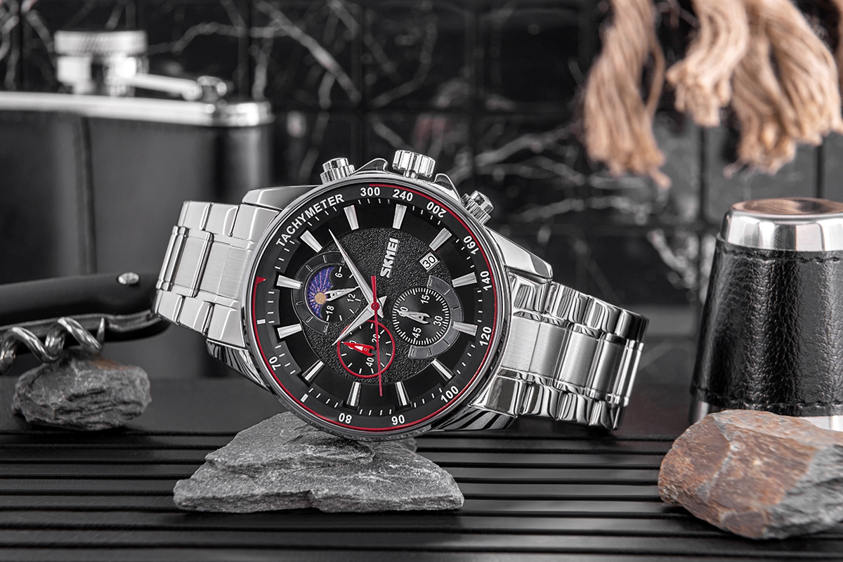 Bransolety zegarków Skmei wykonane z najwyższej jakości stali nierdzewnej, łączą w sobie surową wytrzymałość z elegancją, która przyciąga spojrzenia. Ich solidna konstrukcja to nie tylko symbol niezawodności, ale też pewność, że zegarek będzie trzymać się mocno na nadgarstku, bez względu na wyzwania dnia. Precyzyjne, bezpieczne zapięcie.